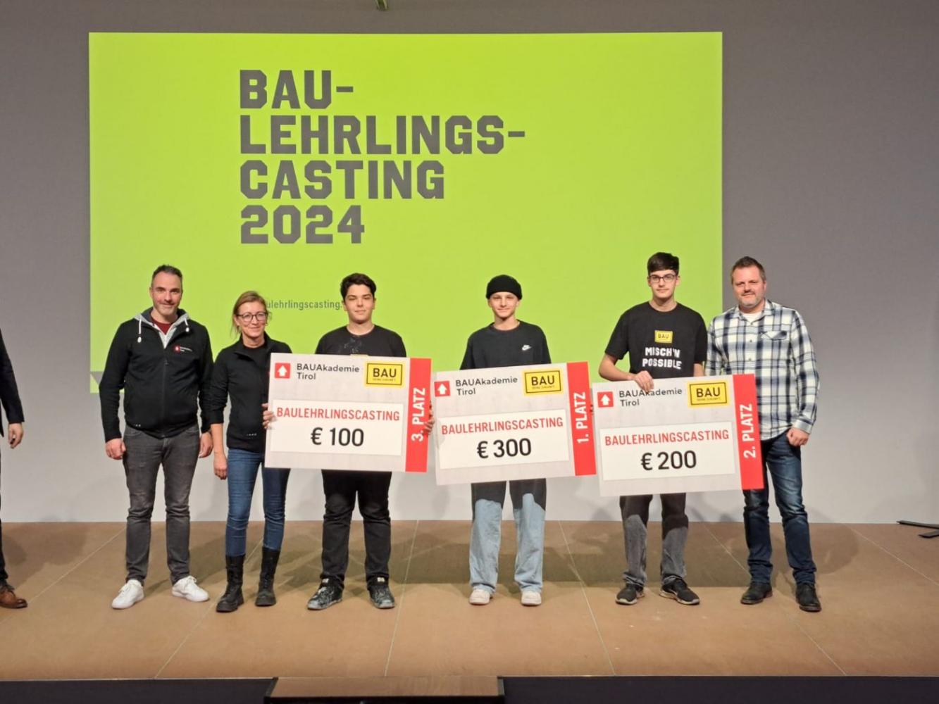 Matteo Zenz, Schüler der PTS Jenbach, hat den 1. Platz beim Baulehrlingscasting 2024 in der Bauakademie Innsbruck erreicht.