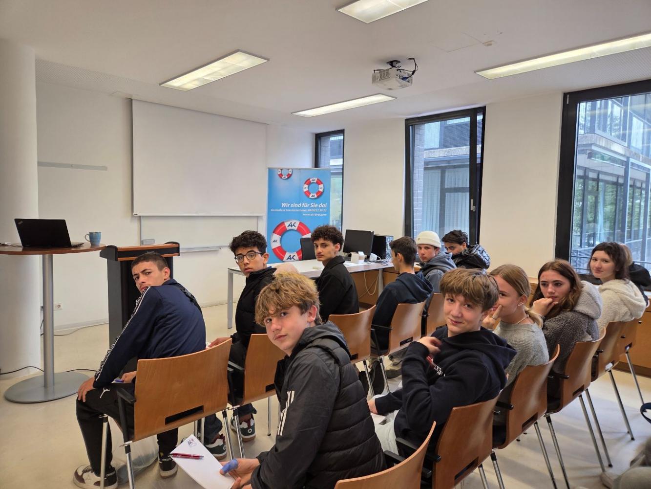In der Arbeiterkammer stellte der Bezirksstellenleiter Andreas Herzog die Aufgaben der AK Tirol vor und vermittelte insbesondere, welche Leistungen und Services die AK für Lehrlinge bietet. Dadurch erhielten die Schülerinnen und Schüler bereits einen guten Einblick und verlieren so vielleicht die Hemmung, hier für Informationen und Unterstützung anzufragen.