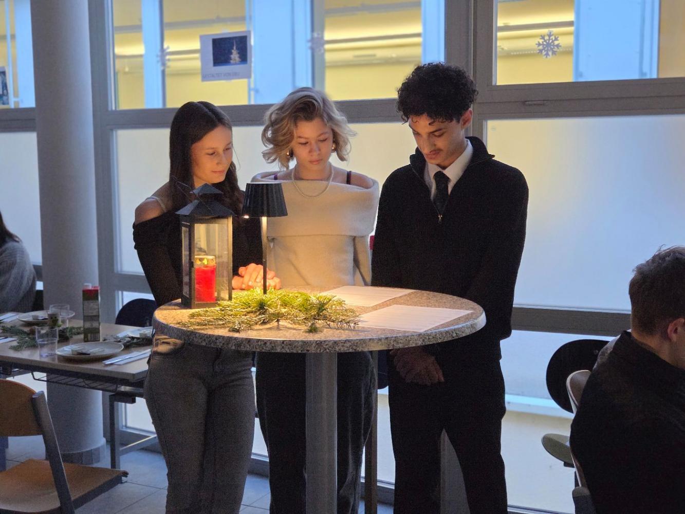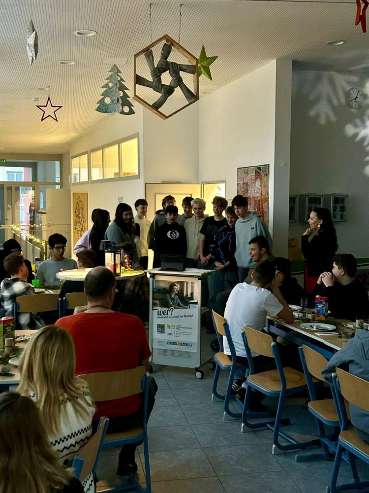 Es ist schon eine Tradition geworden, dass die Schülerinnen und Schüler der PTS Jenbach am letzten Schultag vor den Weihnachtsferien im Rahmen des gemeinsamen Weihnachtsfrühstücks ihre eigene Inszenierung eines Adventsingens veranstaltet. Einige Freiwillige haben besinnlich-adventliche Texte und Gedichte vorbereitet, die sie allen vorgetragen haben. Sowohl in der A-Klasse, als auch in der B-Klasse haben sich talentierte Sängerinnen und Sänger zusammengefunden, die bekannte Weihnachtshits wie "Feliz Navidad", "Jingle Bells" oder "Last Christmas" als Adhoc-Schulchor zum Besten gaben.