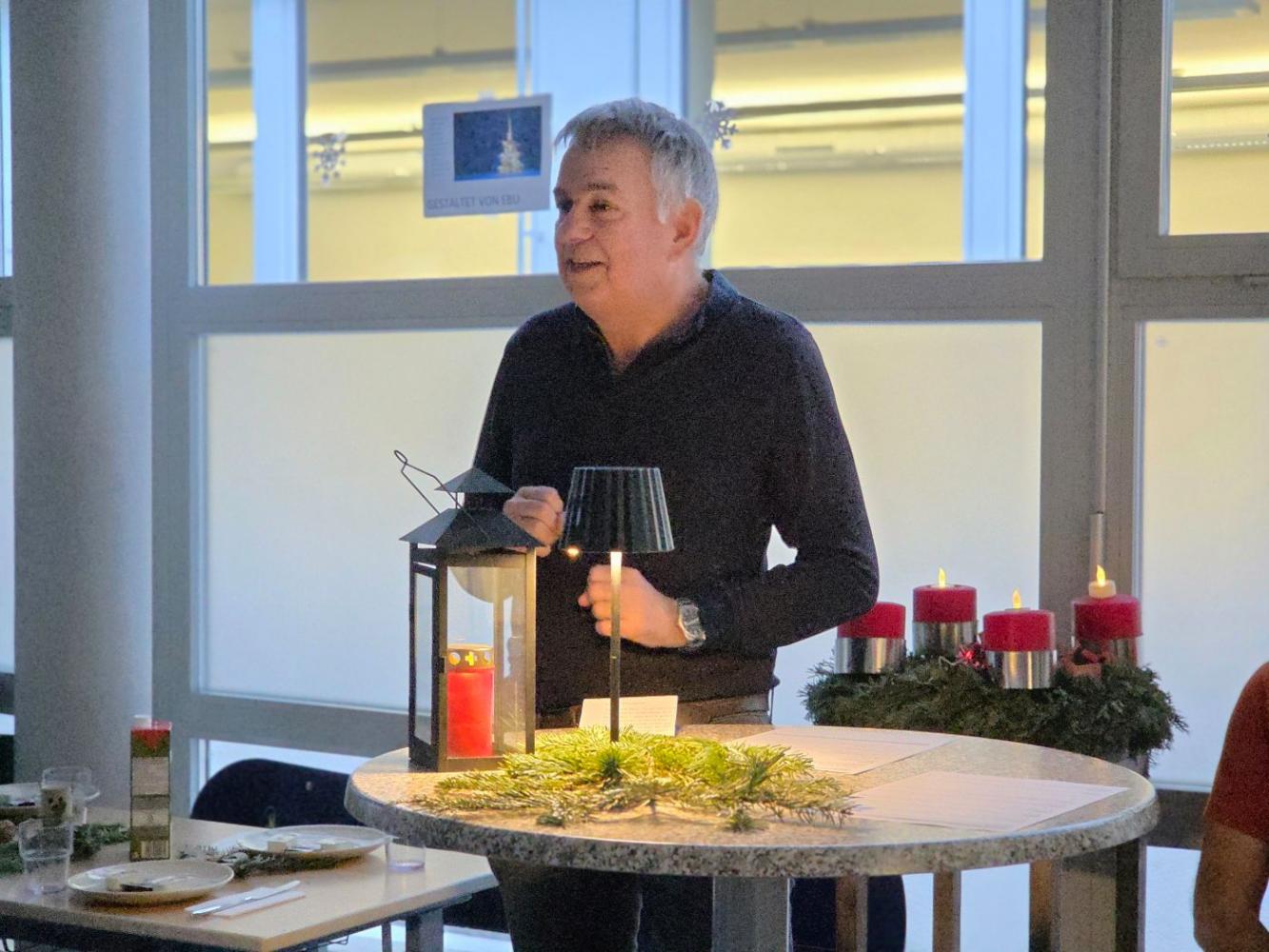 Reinhard Macht, Diakon der Pfarre Jenbach, war als besonderer Gast geladen. Auch er hat im Rahmen einer Weihnachtsgeschichte Gedanken für die kommenden Weihnachtsferien mitgegeben. Außerdem als Gäste geladen waren Personen, die unser Schulleben durch ihre tatkräftige Unterstützung bereichern. So konnten wir Beratungslehrerin Simone Kirchmaier, Beratungslehrer Robert Unterweger, Eva von den SchuSo, arbas-Jugendcoach Fabian und das Schulteam mit Schulwart Christoph und den Reinigungsdamen Sonja und Monique begrüßen.
