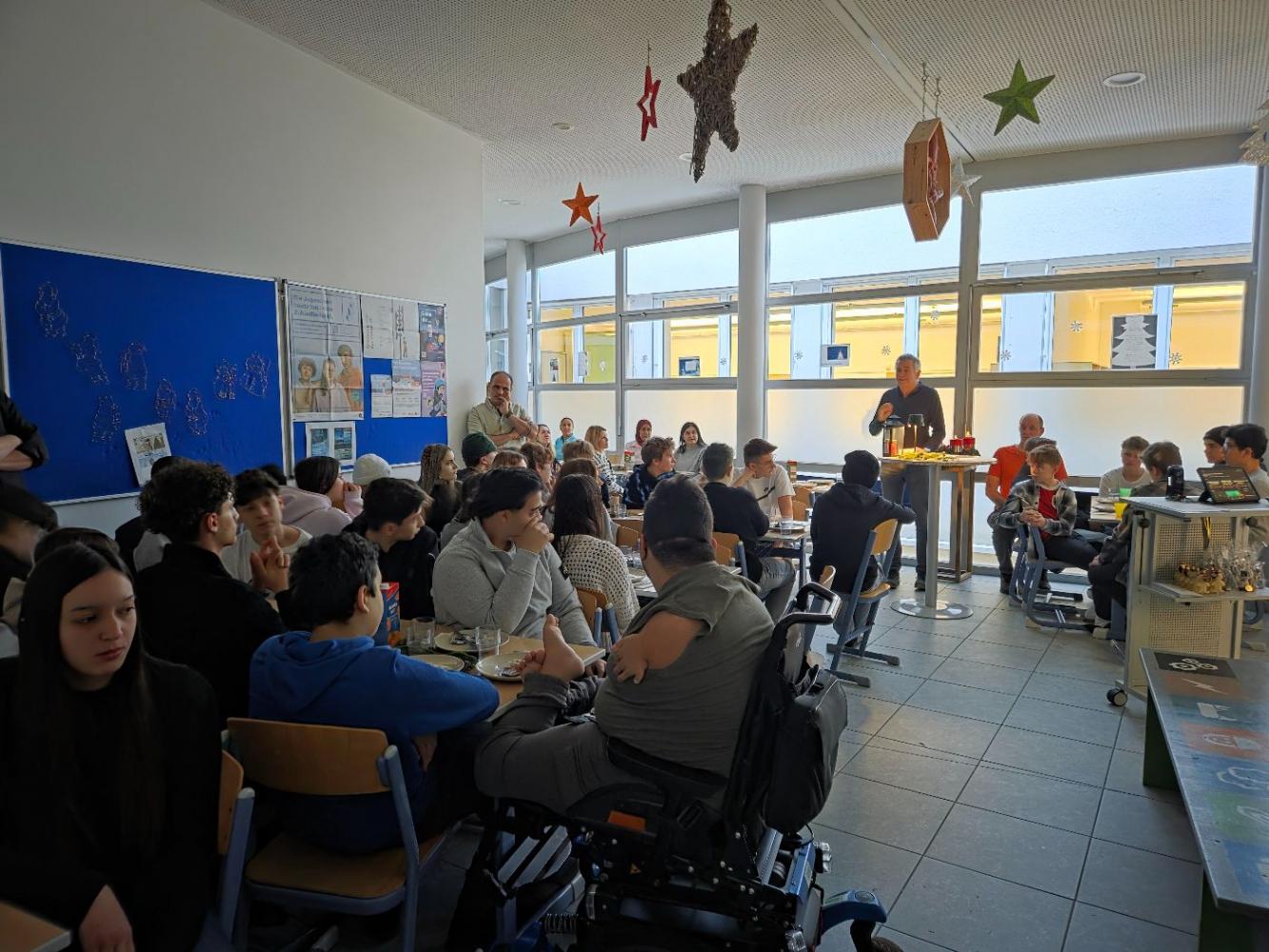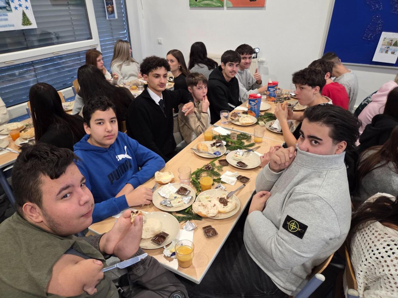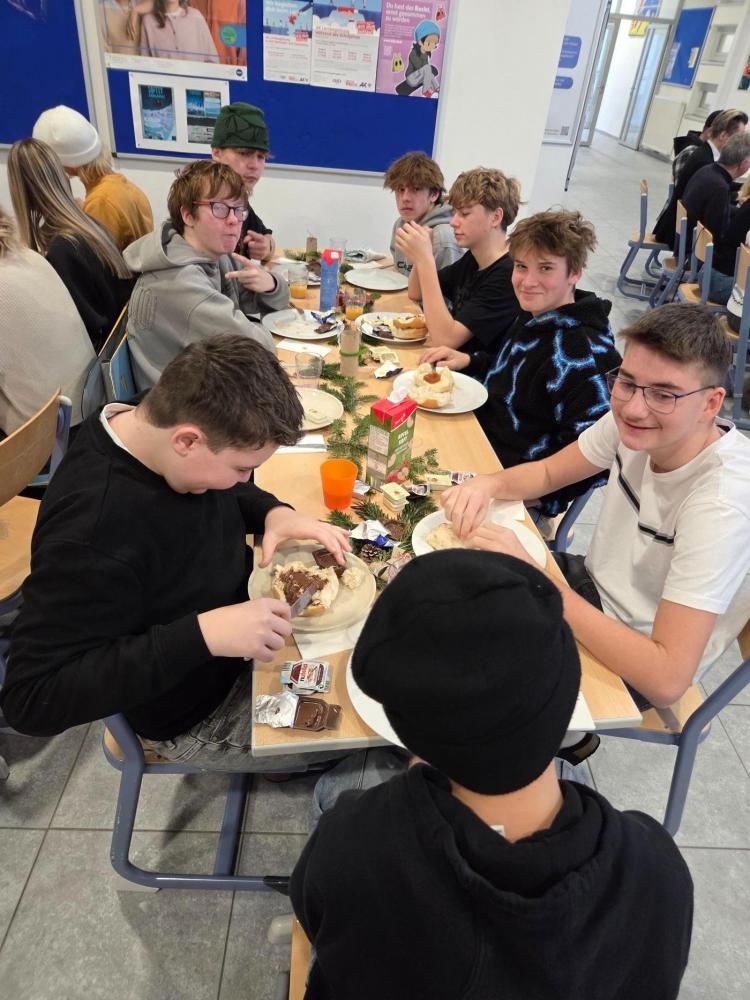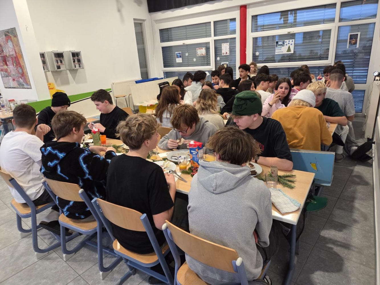 Im Anschluss an das besinnliche Rahmenprogramm gab es frische Semmeln mit Marmelade und Nutella und viele angenehme Gespräche an den Tischen. So können die Weihnachtsferien beginnen!
