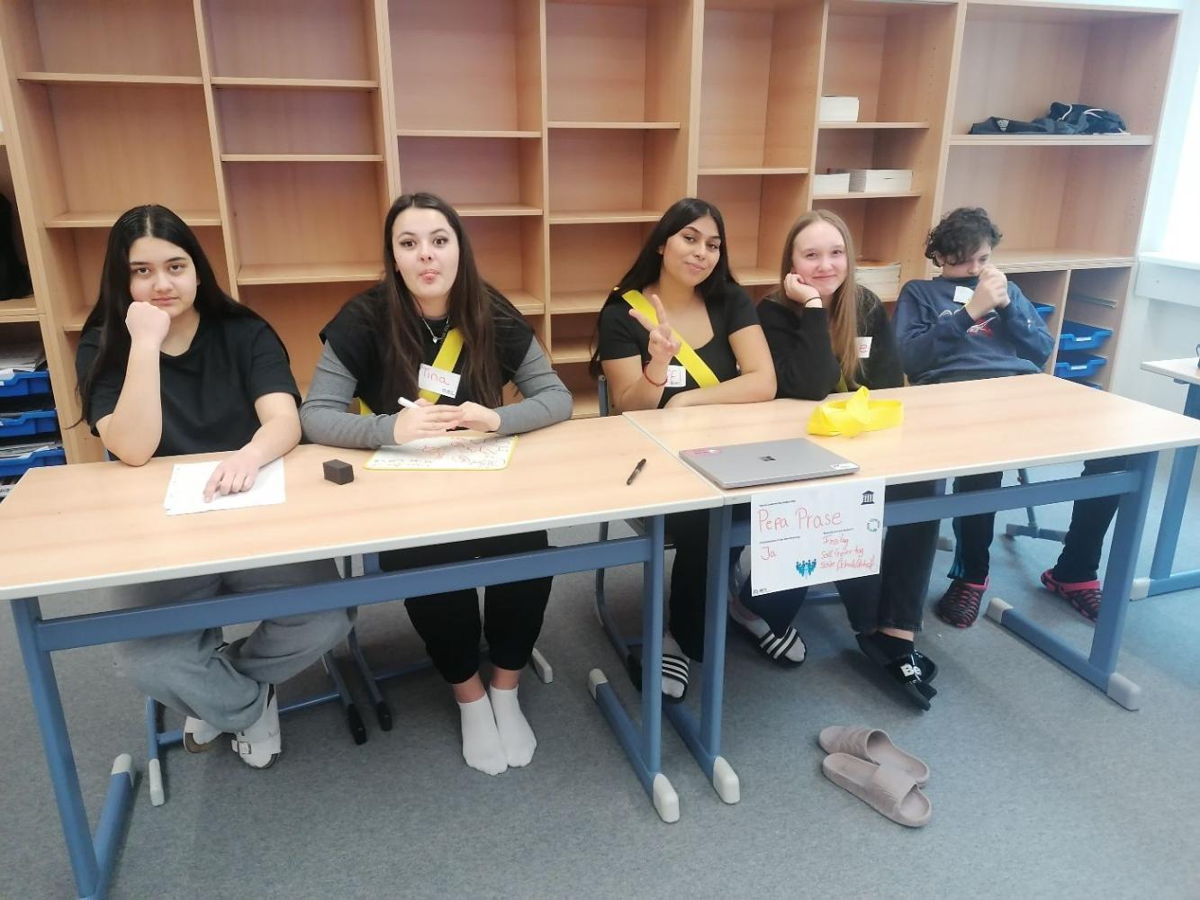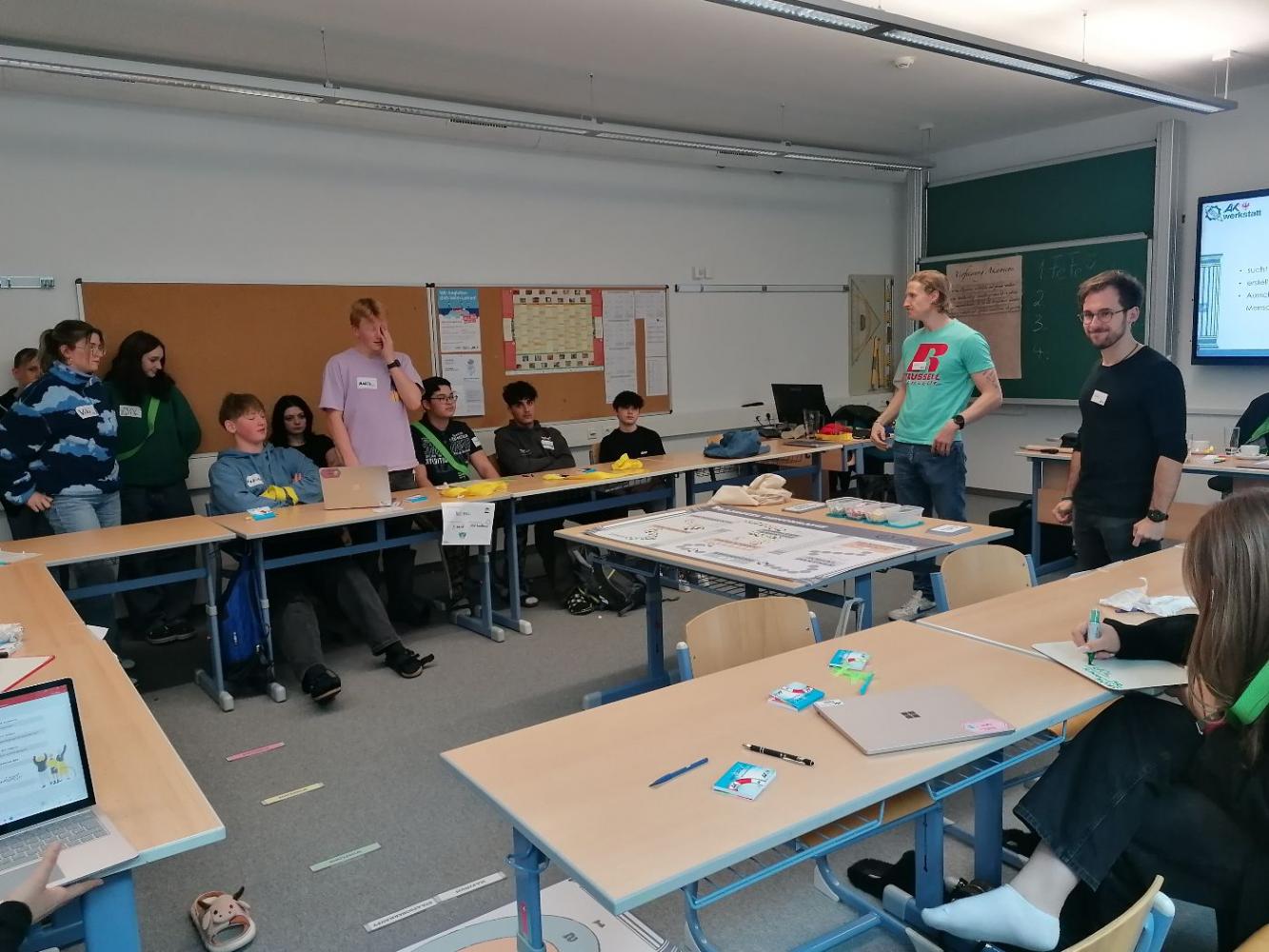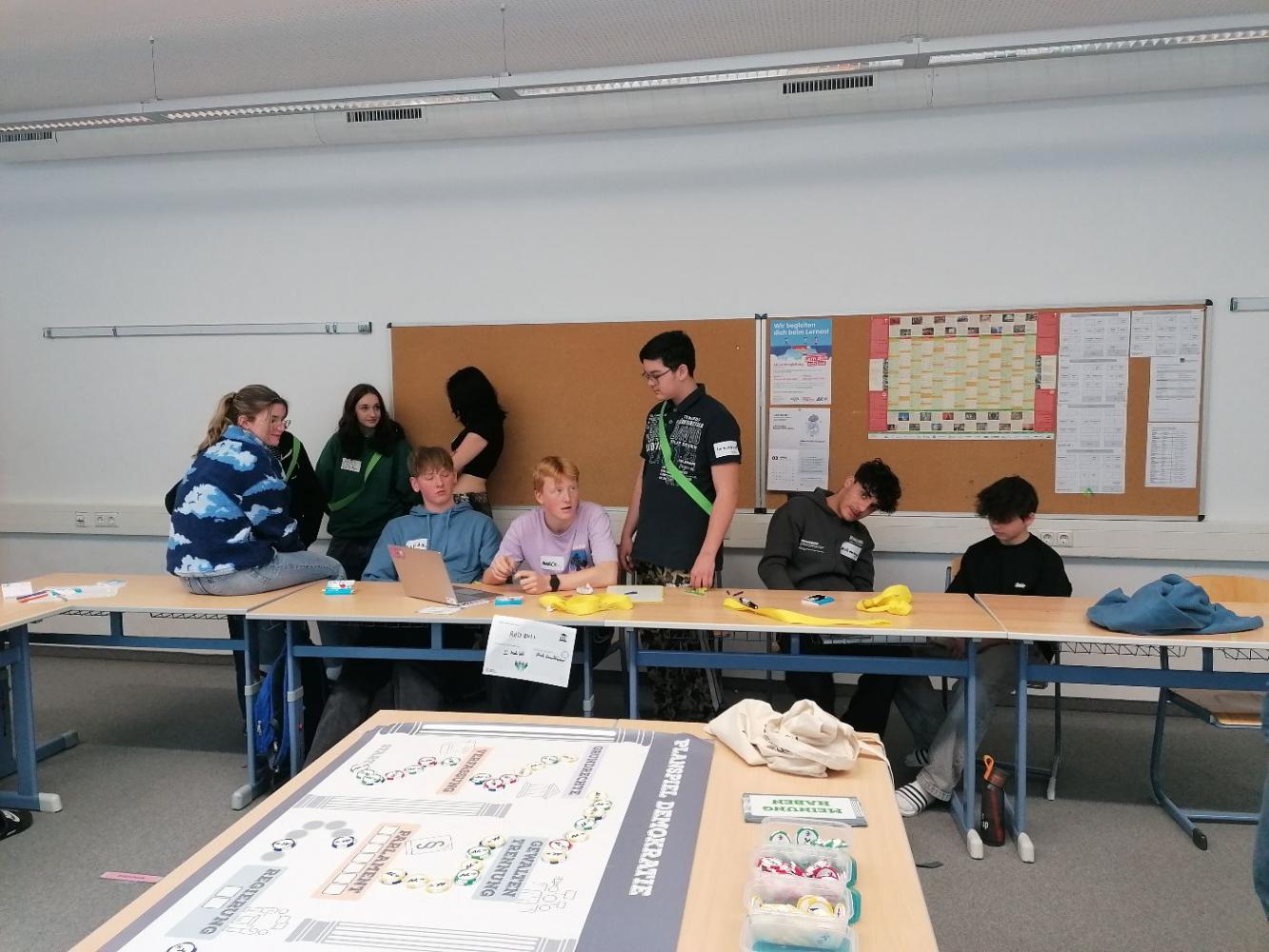 Die AK Werkstatt besuchte uns im März, um in zwei Gruppen das "Planspiel Demokratie" durchzuführen.